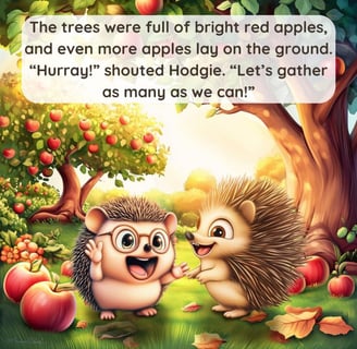 Welcome to Wigglydo World! Join Hodgie the Hedgehog on delightful adventures filled with stories, imagination, and fun. Our cozy site is perfect for young children, featuring colorful characters and engaging content. Stay tuned for more friends like Bunny the Bunny and Mimi who will join the fun soon! See below some pages from the Hodgie picture book entitled "Let's Go Apple Picking".